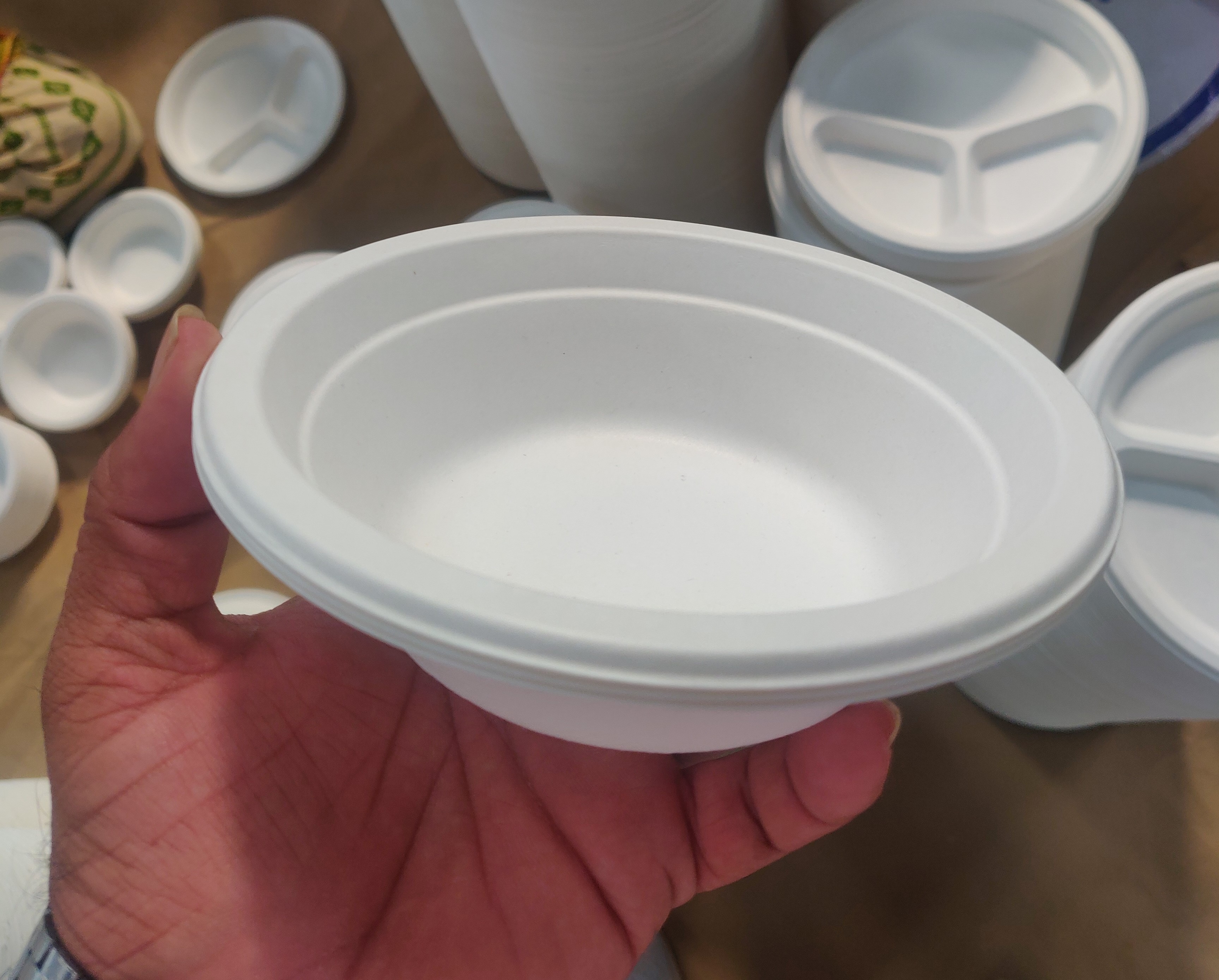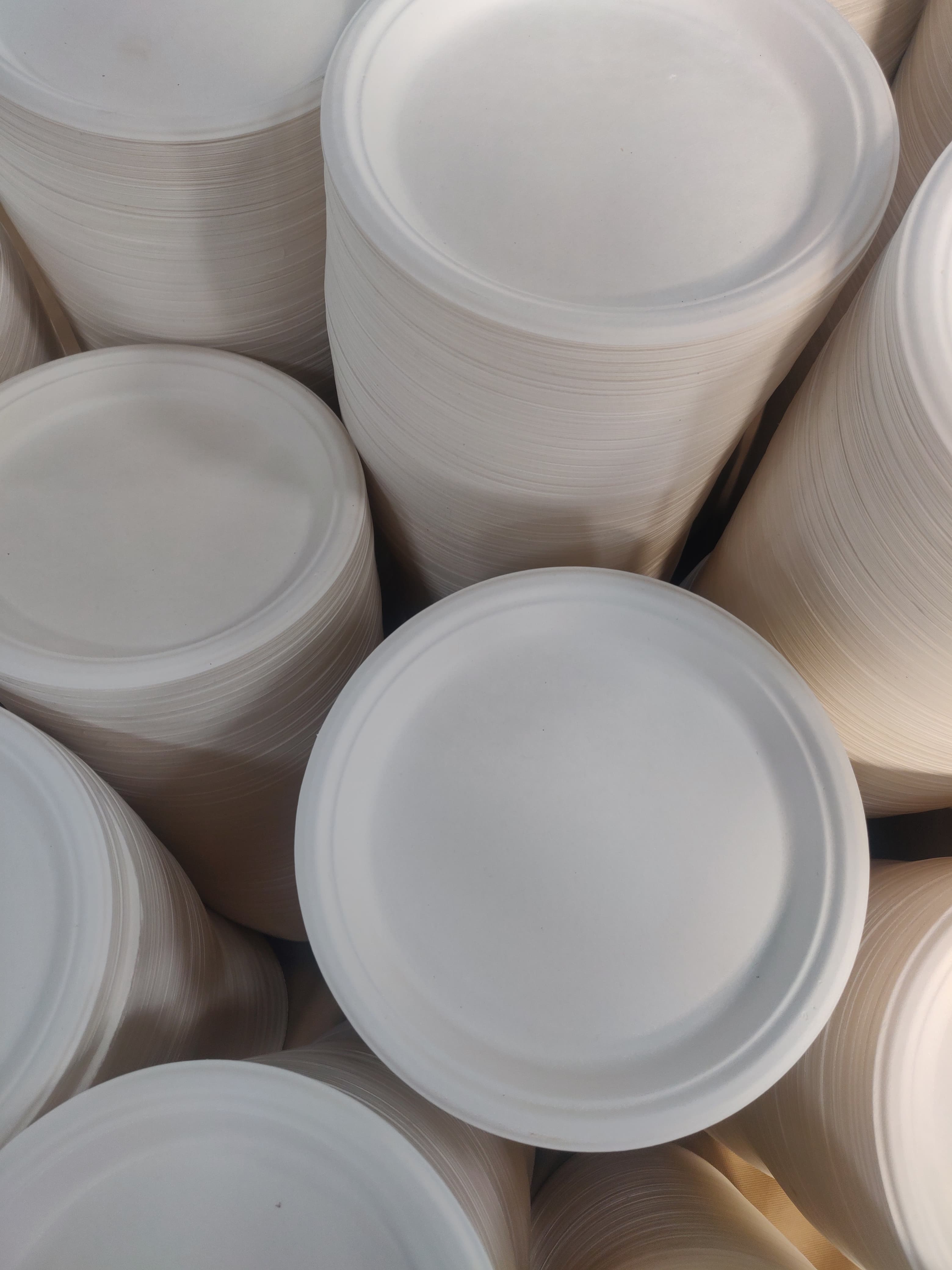 Sturdy PFAS‑free bagasse plate for hot and cold foods.